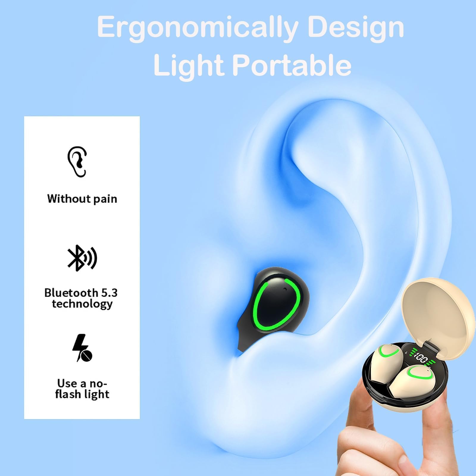 - 《One-Step Auto Pairing》 This sleeping tiny headphones with one-touch pairing technology. Take out the invisible headphones from the charging case, the invisible bluetooth earbuds can automatically pair with the last connected device again quickly. Mini bluetooth ear buds it’s compatible with most Bluetooth music players.