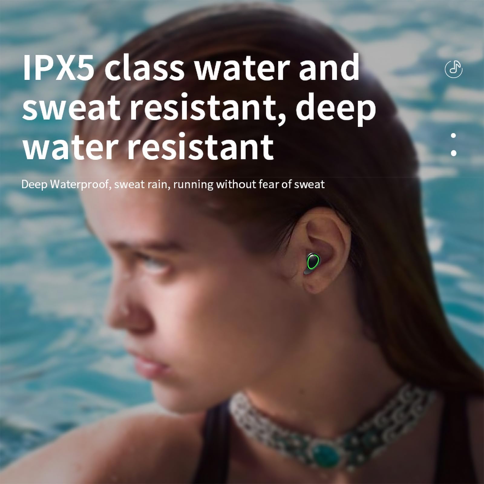 - 《Lightweight & Stable Fit》Featuring ergonomic semi in ear design, the tiny wireless headphones secure fit your ears and will not be easy to fall off, mini wireless earbuds bring you a stable and comfortable wearing experience.The compact and sleek charging case fits easily in pocket, thus you can take them with you anytime & anywhere. And the clean appearance look make it not only earphones but also a small decoration on your ears.