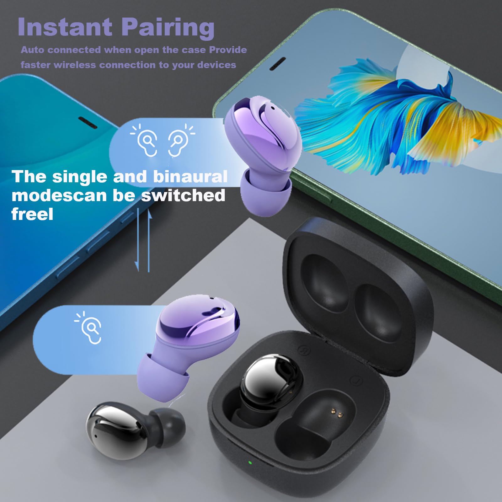 • 《Automatic Pairing》The wireless Invisible earbuds adopts automatic switch. After first connection, wireless mini headphones will connect with your device once you open the charging case, which is faster and more convenient.
