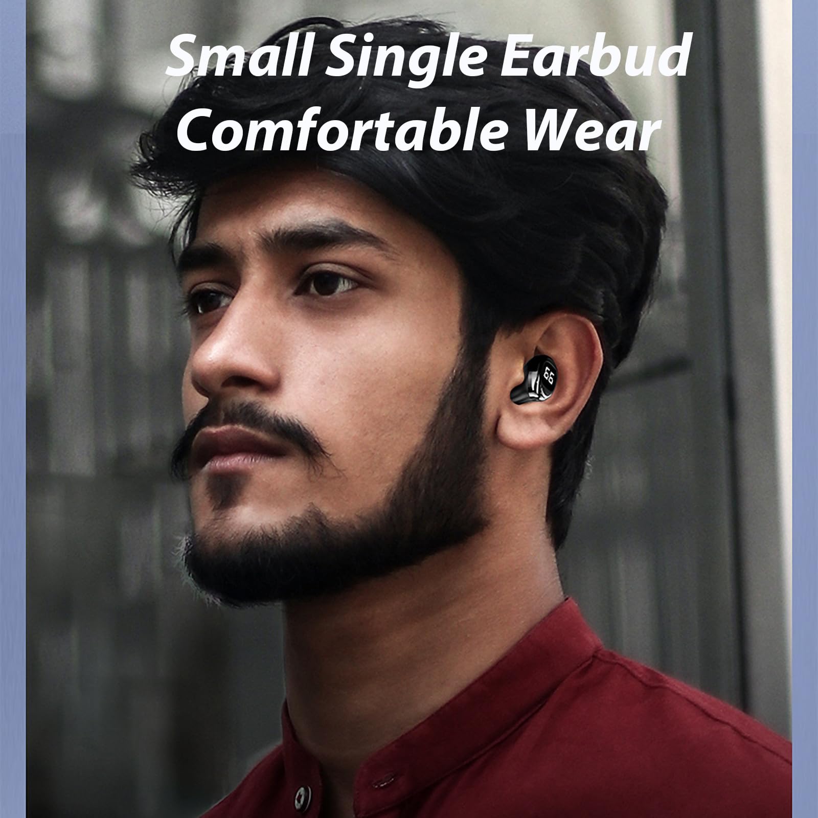 - 《Ergonomics Design》Wireless single earbud is mini and lightweight. The shape of the headphones is designed to fit the ear. It is comfortable to wear without strain. You can wear it all day without pressure.