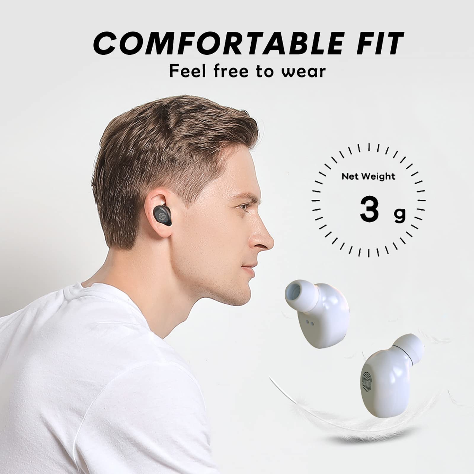 - 🎧 EXQUISITE APPEARANCE & GREAT GIFT - Bluetooth earbuds are available in two classic colors, white and black. The exterior is 100% gloss sprayed for a delicate touch and a sophisticated look.True Wireless Stereo Great Gift for anyone. True wireless earbuds can produce incredible sound quality with deep bass and crystal clear treble. Extremely light weight. It is an excellent birthday gift or Christmas gift for friends