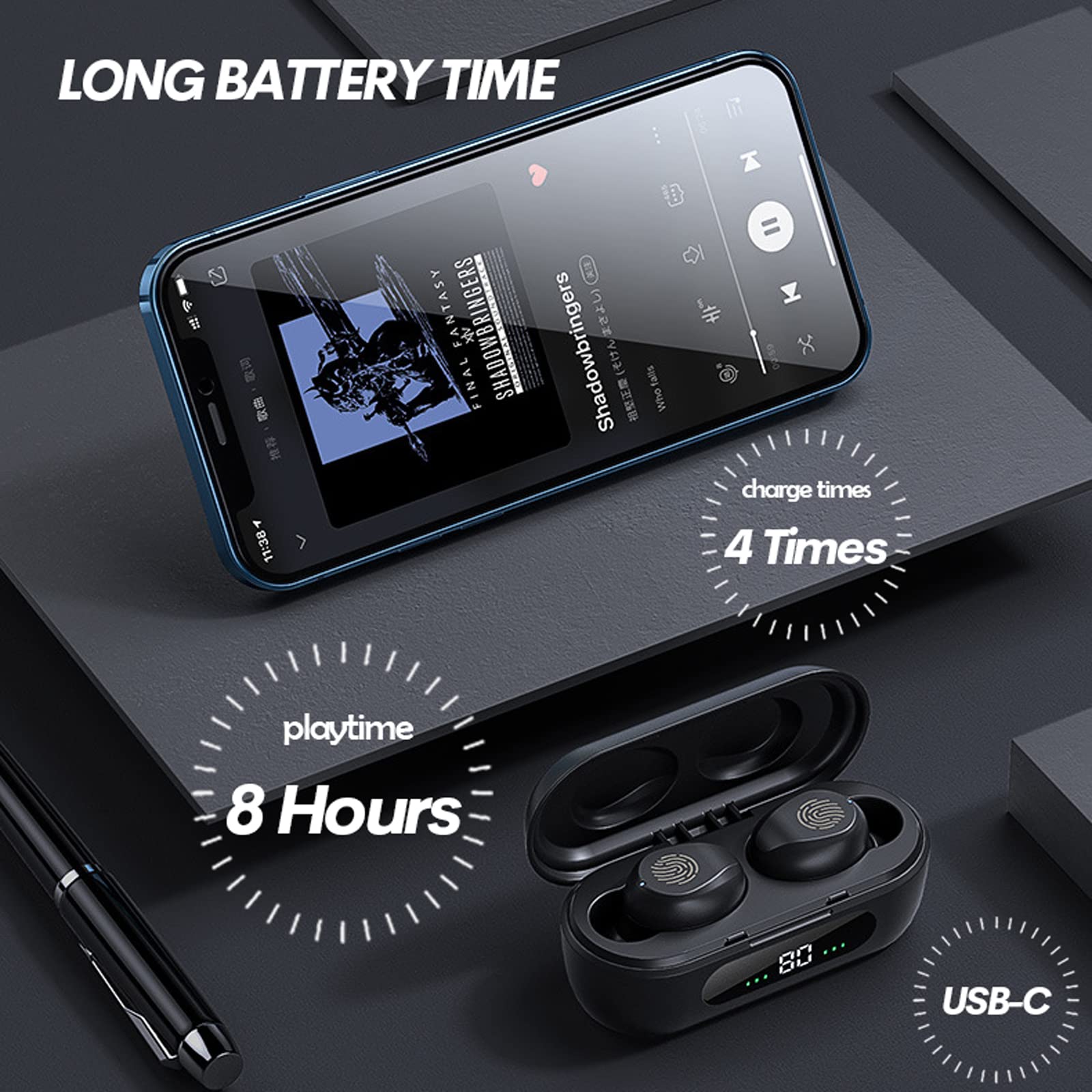 - 🎧 32H LONG PLAY TIME - The wireless earbuds can be listened to for 8 hours at a time when fully charged, and 40 hours of battery life with the charging case, which can meet the needs of all-day listening.